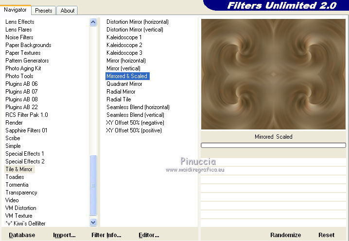 7. Effetti>Plugins>Filters Unlimited 2.0 - Tile & Mirror - Mirrored & Scaled.