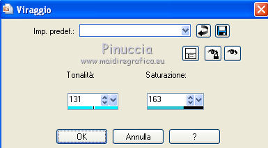 17. Regola>Tonalità e saturazione>Viraggio, con i settaggi precedenti.