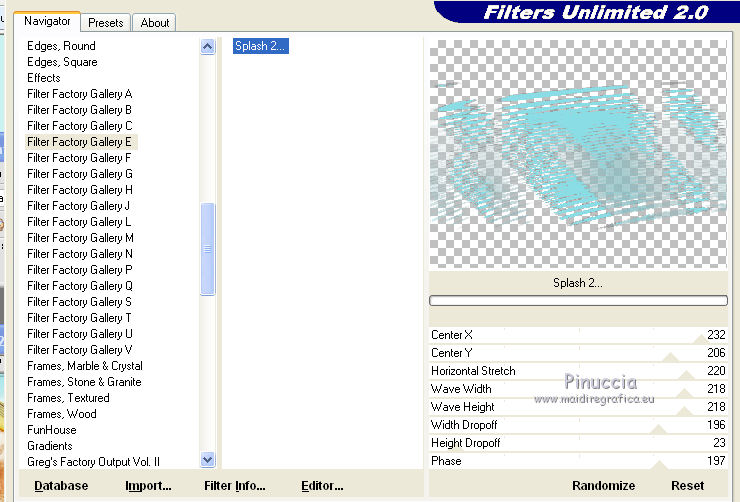 Effetti>Plugins>Filters Unlimited - Filter Factory Gallery E - Splash 2 con i settaggi standard.