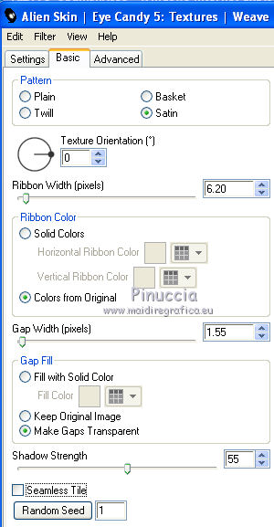 17. Effetti>Plugins>Alien Skin Eye Candy 5 Textures - Weave con i settaggi precedenti.