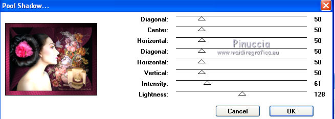 18. Effetti>Plugins>Tramages - Pool Shadow, con i seguenti settaggi.