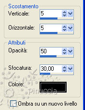 Effetti>Effetti 3D>sfalsa ombra, con i seguenti settaggi, colore nero.