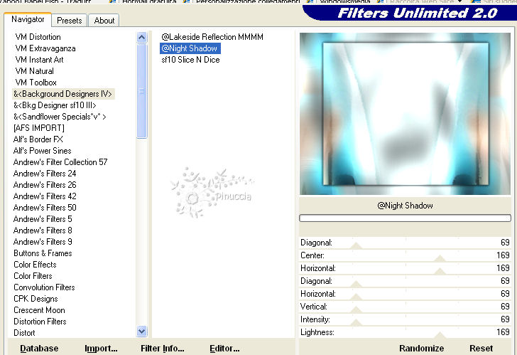 qui puoi trovare qualche risposta ai tuoi dubbi. Se l'argomento che ti interessa non è presente, ti prego di segnalarmelo. Questo tutorial è stato creato con PSP X2, ma può essere eseguito anche con le altre versioni di PSP. Per tradurlo, ho usato PSP X. Occorrente: Materiale qui I tubes sono di Annemiek, Germine, Sischu, Angie, Devilinside, Jhanna. Grazie a tutti i creatori di tubes per le loro immagini. Lascia intatto il nome del tube. Il © appartiene all'artista originale. Mantieni il credito di chi ha creato il tube. Filtri: Filters Unlimited 2.0 qui Background designer IV qui Penta.com - Color dot qui 1. Apri una nuova immagine trasparente 650 x 500 pixels. 2. Imposta il colore di primo piano con il bianco #ffffff, e il colore di sfondo con #98b67cd. 3. Selezione>Seleziona tutto. Livelli>Nuovo livello raster. 4. Apri Jhanna-171-bground e vai a Modifica>Copia. Torna al tuo lavoro e vai a Modifica>Incolla nella selezione. Selezione>Deseleziona. 5. Effetti>Plugins>Filters Unlimited - Background designer IV - Night shadow, con i settaggi standard. ![]() 6. Effetti>Plugins>Penta.com - Color Dot, con i settaggi standard. ![]() 7. Apri il tube Devilinside-253 e vai a Modifica>Copia. Torna al tuo lavoro e vai a Modifica>Incolla come nuovo livello. Immagine>Ridimensiona, al 75%, tutti i livelli non selezionato. Il tube è già correttamente posizionato. Non occorre spostarlo. Abbassa l'opacità di questo livello al 60%. 8. Apri il tube Angie-creatubes12 e vai a Modifica>Copia. Torna al tuo lavoro e vai a Modifica>Incolla come nuovo livello. Immagine>Ridimensiona, all'85%, tutti i livelli non selezionato. Immagine>Rifletti. Sposta il tube a sinistra.Abbassa l'opacità di questo livello al 76%. 9. Apri il tube JC-toawarmerplace e vai a Modifica>Copia. Torna al tuo lavoro e vai a Modifica>Incolla come nuovo livello. Immagine>Ridimensiona, al 60%, tutti i livelli non selezionato. Sposta il tube in alto a destra.Cambia la modalità di miscelatura di questo livello in Luminanza, e abbassa l'opacità al 50%. 10. Apri il tube cocktailwoman e vai a Modifica>Copia. Torna al tuo lavoro e vai a Modifica>Incolla come nuovo livello. Immagine>Ridimensiona, al 45%, tutti i livelli non selezionato. Sposta il tube in basso a destra.11. Effetti>Effetti 3D>Sfalsa ombra, con il colore nero. ![]() 12. Apri il tube cocktail-of-fruit e vai a Modifica>Copia. Torna al tuo lavoro e vai a Modifica>Incolla come nuovo livello. Immagine>Ridimensiona, al 35%, tutti i livelli non selezionato. Sposta il tube al centro.13. Effetti>Effetti 3D>sfalsa ombra, con i settaggi precedenti. ![]() 14. Aggiungi il tuo nome e/o il tuo watermark su un nuovo livello. 15.Immagine>Aggiungi bordatura, 2 pixels, simmetriche, con il colore di sfondo. Immagine>Aggiungi bordatura, 2 pixels, simmetriche, con il colore di primo piano. Immagine>Aggiungi bordatura, 2 pixels, simmetriche, con il colore di sfondo. 16. Immagine>Ridimensiona, a 650 pixels di larghezza, tutti i livelli selezionato. 17. Regola>Messa a fuoco>Maschera di contrasto. ![]() Hai finito. Puoi salvare in formato jpg. ![]() Se hai problemi o dubbi, o trovi un link non funzionante, o anche soltanto per un saluto, scrivimi.