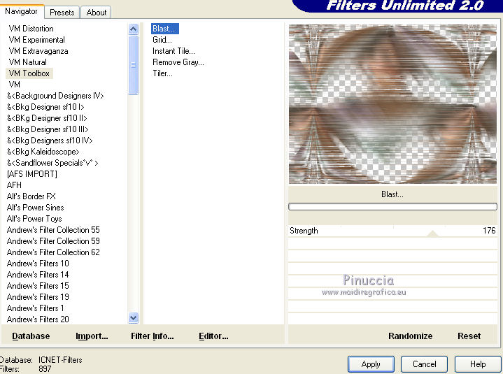 7. Effetti>Plugins>Filters Unlmited - VM Toolbox - Blast, con i settaggi standard.