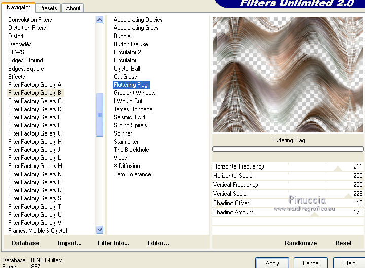 8. Effetti>Plugins>Filters Unlimited - Filter Factory Gallery B - Fluttering Flag.