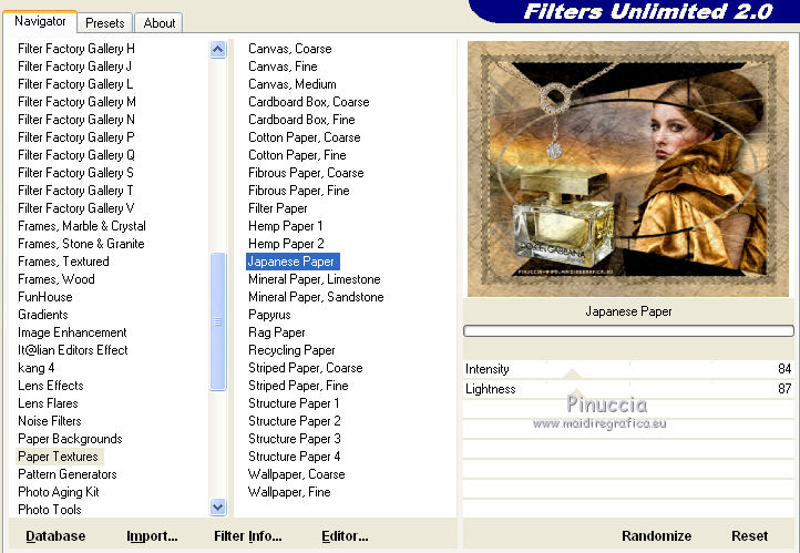 32. Effetti>Plugins>Filters Unlimited 2.0 - Paper Textures - Japanese Paper, con i settaggi standard.