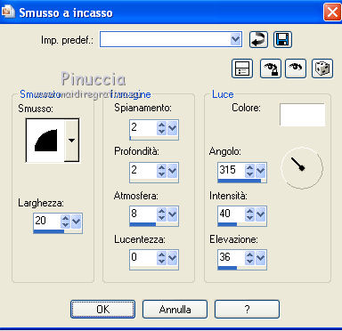 Effetti>Effetti 3D>Smusso a incasso, con i settaggi precedenti.