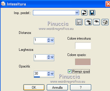 22. Effetti>Effetti di trama>Intessitura - 2 volte con i seguenti settaggi: