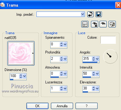 3. Effetti>Effetti di trama>Trama - seleziona la trama natfl355 con i seguenti settaggi.