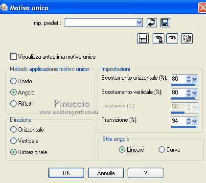9. Effetti>Effetti di immagine>Motivo unico, con i seguenti settaggi.