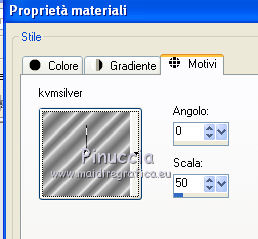 20. Passa il colore di sfondo a Motivi e seleziona un motivo argento a tua scelta con i seguenti settaggi.