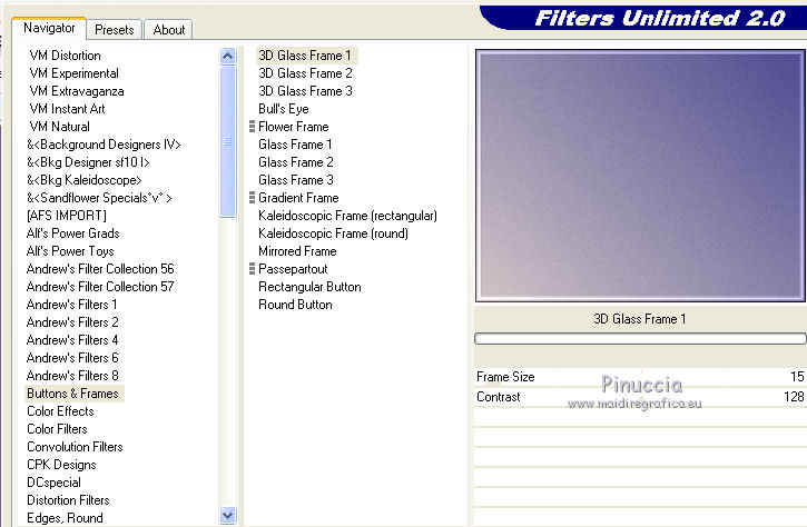 Effetti>Plugins>Filters Unlimited 2.0 - Buttons & Frames - 3D Glass Frame 1.