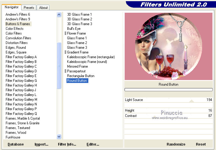 17. Effetti>Plugins>Filters Unlimited 2.0 - Buttons & Frames: