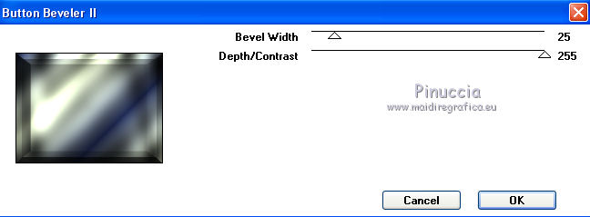 32. Effetti>Plugins>Graphics Plus - Button Beveler II, con i settaggi precedenti.