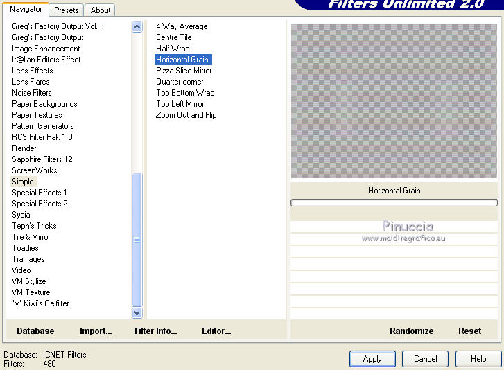Effetti>Plugins>Filters Unlimited 2.0 - Simple - Horizontal Grain.