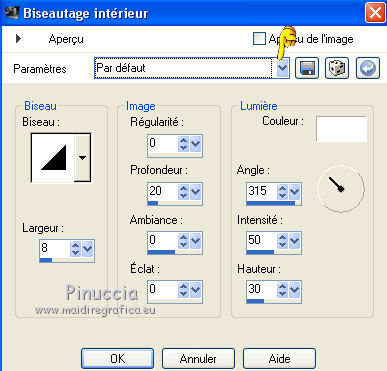29. Effets>Effets 3D>Biseautage intérieur, par défaut.