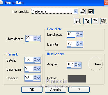 7. Effetti>Effetti tecniche di disegno>Pennellate, con i settaggi standard.