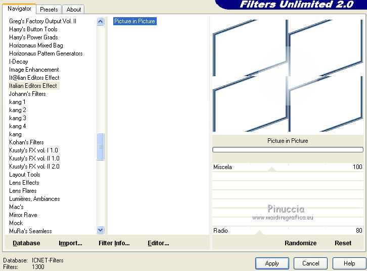 I filtri Italian Editors si possono usare da soli o importati in Filters Unlimited