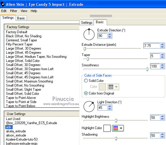 18. Effetti>Plugins>Alien Skin Eye Candy 5 Impact - Extrude