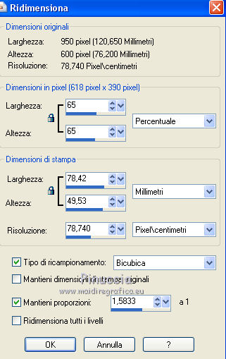 25. Immagine>Ridimensiona, al 65%, tutti i livelli non selezionato, mantieni proporzioni selezionato.