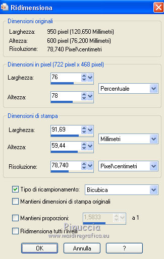 20. Immagine>Ridimensiona, 76 x 78%, tutti i livelli e mantieni proporzioni non selezionati.