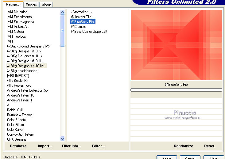 5. Effetti>Plugins>Filters Unlimited 2.0 - &<Bkg Designer sf10IV> - Blue Berry Pie.
