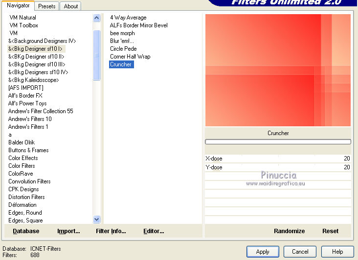 3. Effetti>Plugins>Filters Unlimited 2.0 - &<Bkg Designer sf10I> - Cruncher