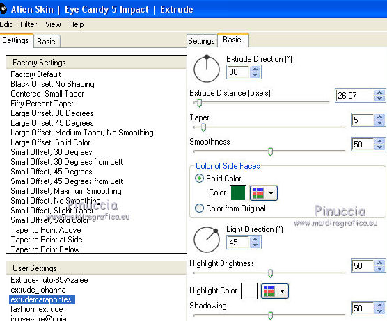 23. Effetti>Plugins>Alien Skin Eye Candy 5 Impact - Extrude.