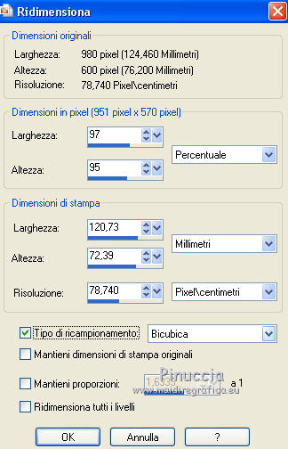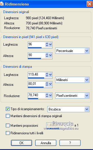 Immagine>Ridimensiona - 96 x 90%, tutti i livelli e mantieni proporzioni non selezionato.
