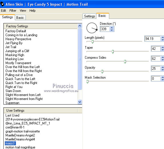 16. Effetti>Plugins>Alien Skin Eye Candy 5 Impact - Motion Trail.