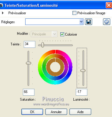 Réglage>Tonalité et Saturation>Tonalité/Saturation/Luminosité