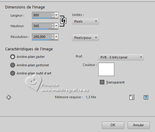 1. Ouvrir une nouvelle image blanche 800 x 500 pixels.