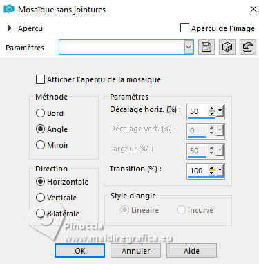 4. Effets>Effets d'image>Mosaïque sans jointures, par défaut.
