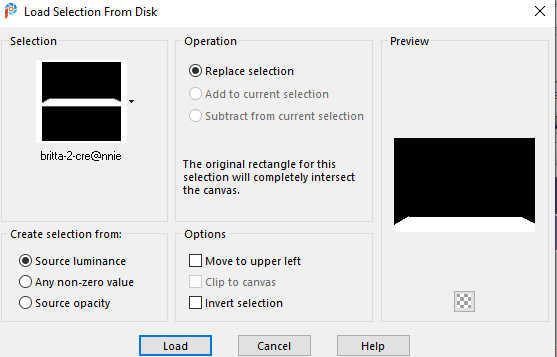 33. Selections>Load/Save Selection>Load Selection from Disk.