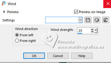 Effects>Distortion Effects>Wind, same settings.