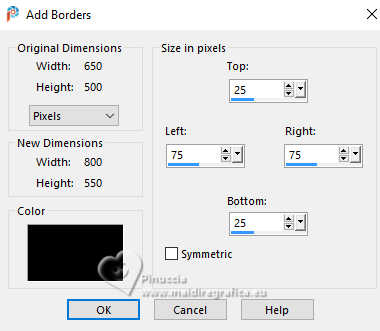 Image>Add Borders, 25 pixels, symmetric, foreground color.