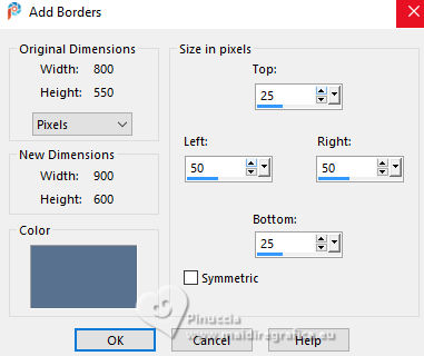 51. Image>Add Borders, 4 pixels, symmetric, background color.