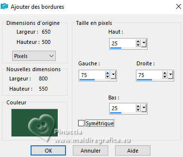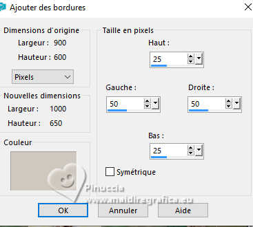 Image>Ajouter des bordures, symétrique décoché, couleur d'arrière plan.
