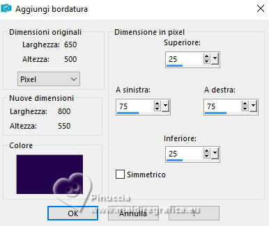 Immagine>Aggiungi bordatura, simmetriche non selezionato, colore di sfondo.
