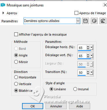 3. Effets>Effets d'image>Mosaïque sans jointures, par défaut.