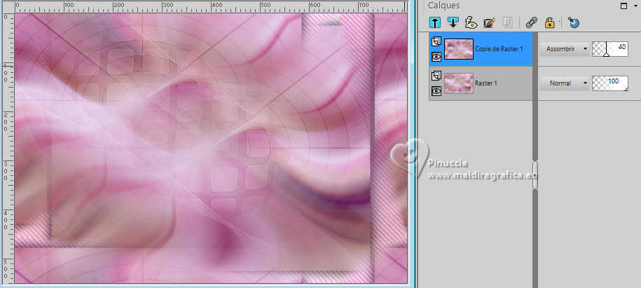 21. Placer le calque en mode Assombrir et réduire l'opacité à 40%.