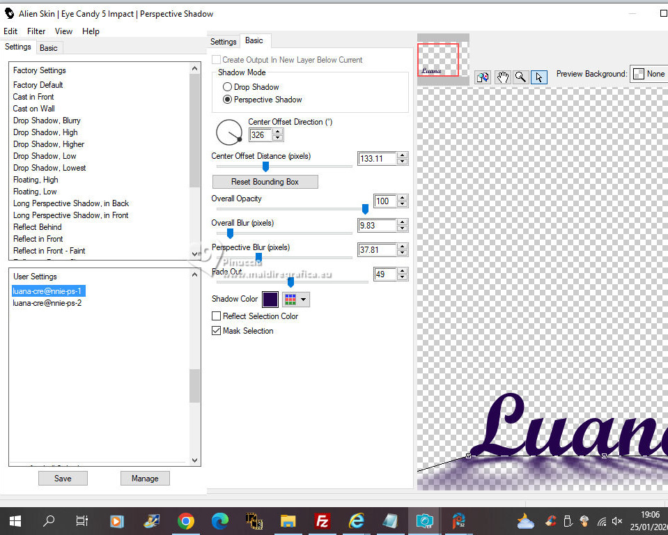 sélectionner le preset luana-cre@nnie-ps-2
