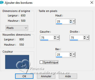 Image>Ajouter des bordures, symétrique décoché, couleur d'arrière plan.