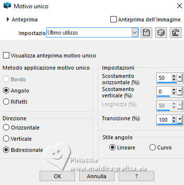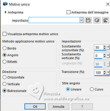 3. Effetti>Effetti di immagine>Motivo unico, con i settaggi standard.