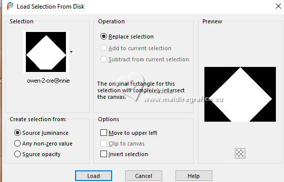17. Selections>Load/Save Selection>Load Selection from Disk.