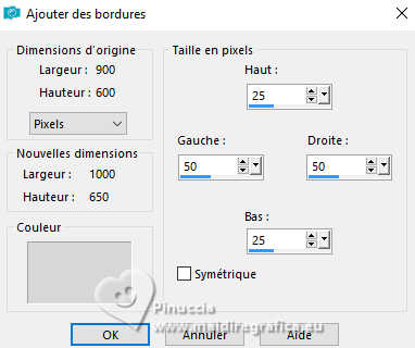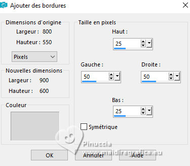 Image>Ajouter des bordures, symétrique décoché, couleur d'arrière plan.