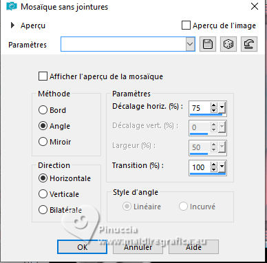 15. Effets>Effets d'image>Mosaïque sans jointures, Horizontale coché.