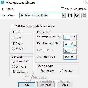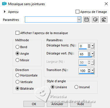 33. Effets>Effets d'image>Mosaïque sans jointures, comme précédemment, mais Horizontale coché