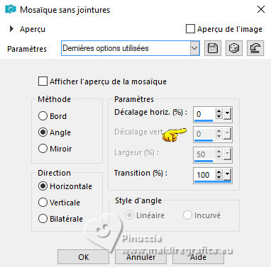 3. Effets>Effets d'image>Mosaïque sans jointures, par défaut.