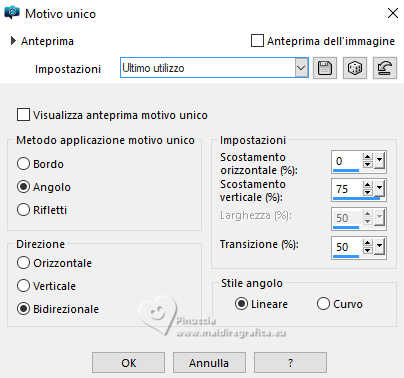 8. Effetti>Effetti di immagine>Motivo unico, orizzontale selezionato.